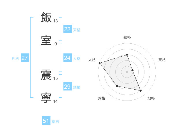 飯室 震寧さんを姓名の画数から五運を鑑定