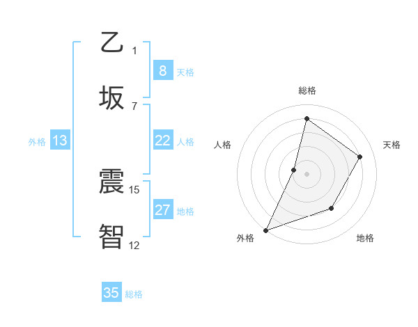 乙坂 震智さんを姓名の画数から五運を鑑定