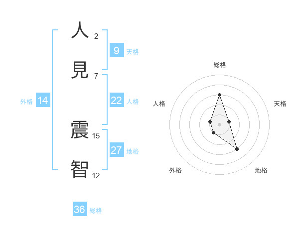 人見 震智さんの地格は27画の3点!