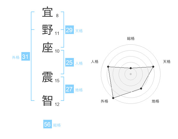 宜野座 震智さんを姓名の画数から五運を鑑定