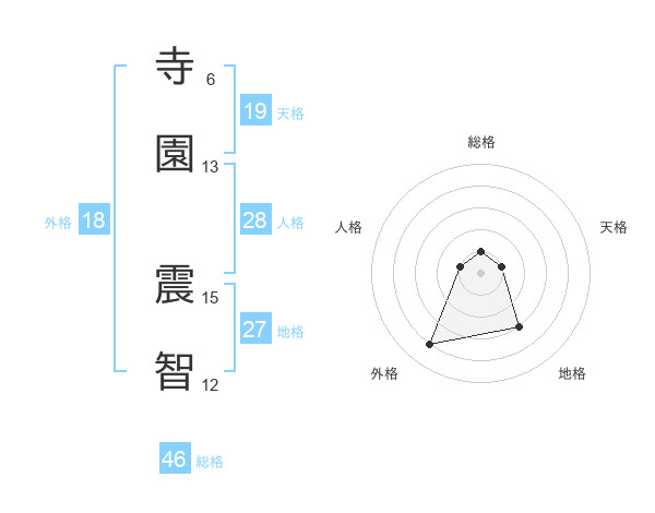 寺園 震智さんを姓名の画数から五運を鑑定