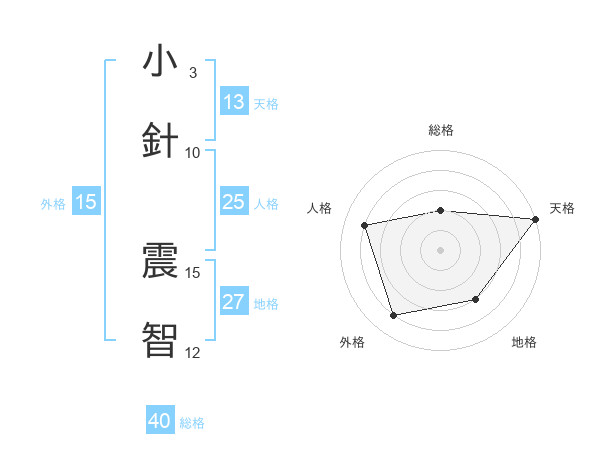 小針 震智さんの天格は13画の5点!
