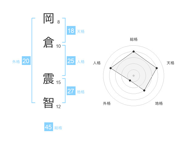 岡倉 震智さんの総格は45画の4点!