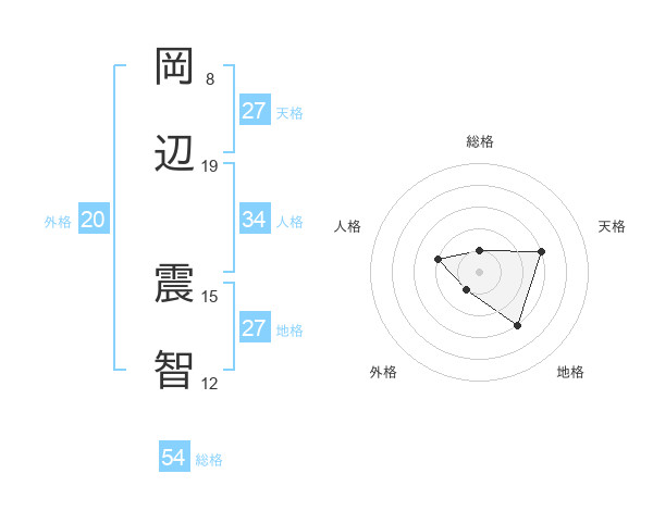 岡辺 震智さんの総格は54画の1点!