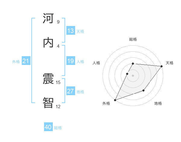 河内 震智さんの天格は13画の5点!