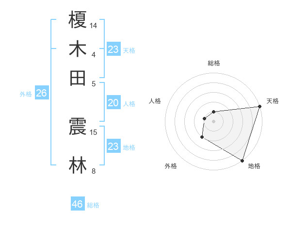 榎木田 震林さんを姓名の画数から五運を鑑定
