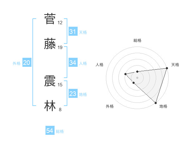 菅藤 震林さんを姓名の画数から五運を鑑定