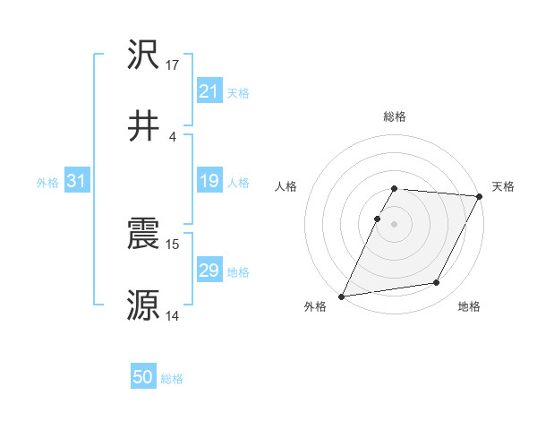 沢井 震源さんの総格は50画の2点!