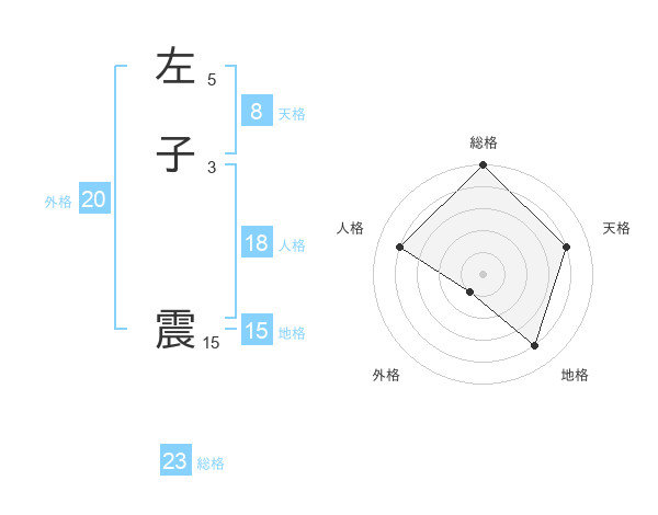左子 震さんの総格は23画の5点!