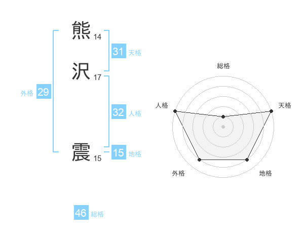 熊沢 震さんの天格は31画の5点!