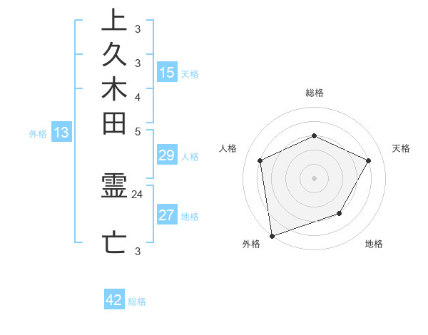 上久木田 霊亡さんを姓名の画数から五運を鑑定