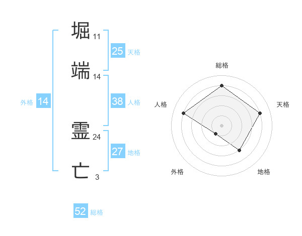 堀端 霊亡さんを姓名の画数から五運を鑑定