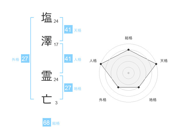 塩澤 霊亡さんを姓名の画数から五運を鑑定