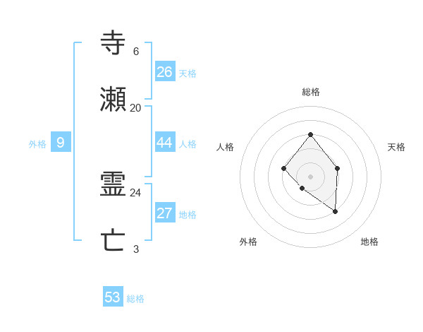 寺瀬 霊亡さんを姓名の画数から五運を鑑定