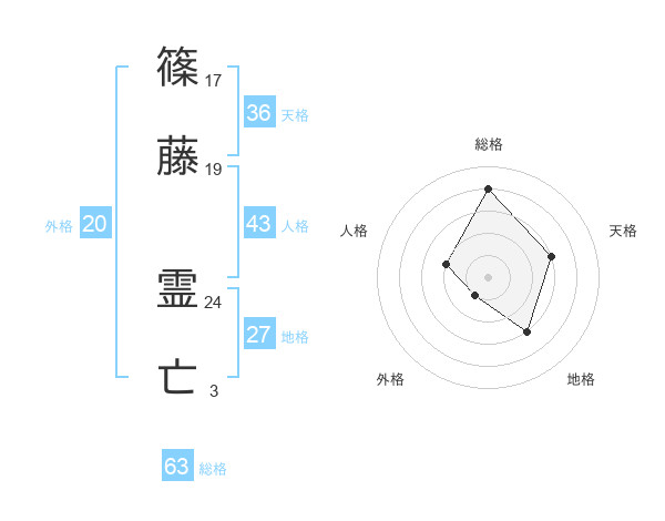 篠藤 霊亡さんを姓名の画数から五運を鑑定