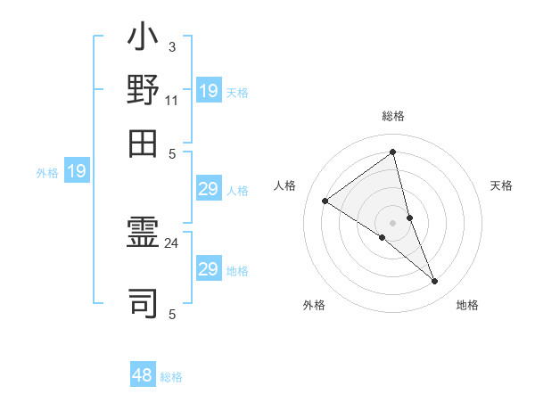 小野田 霊司さんを姓名の画数から五運を鑑定
