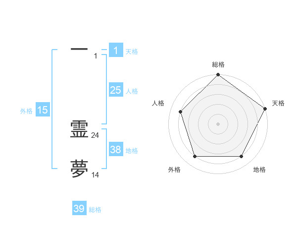 一 霊夢さんの総格は39画の5点!
