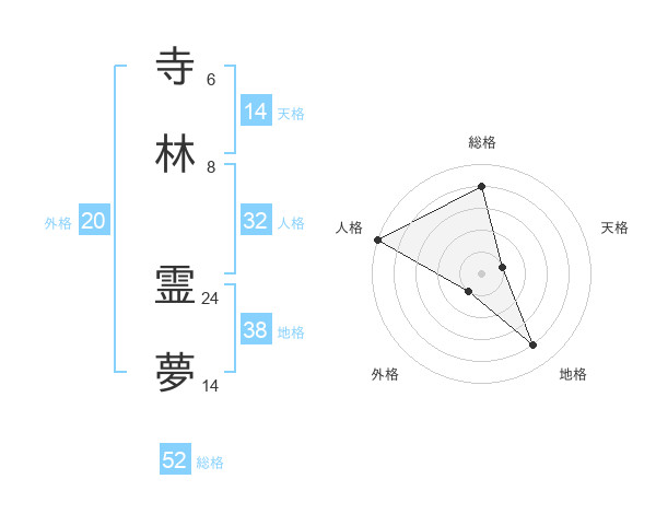 寺林 霊夢さんの総格は52画の4点!