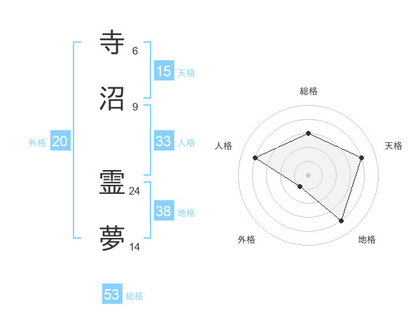 寺沼 霊夢さんの総格は53画の3点!