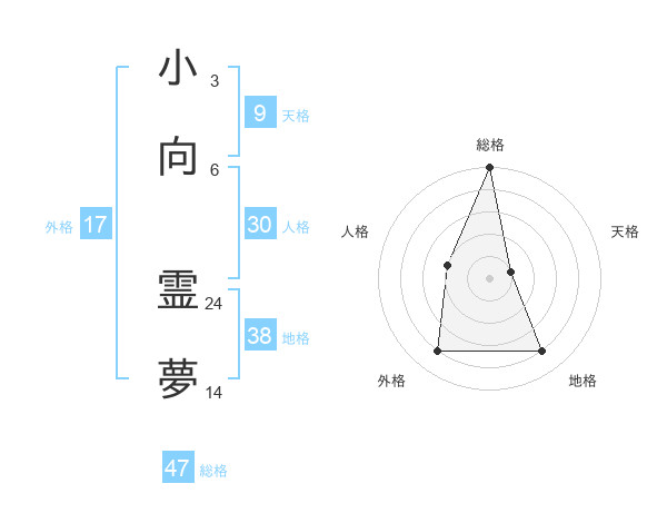 小向 霊夢さんを姓名の画数から五運を鑑定