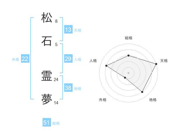 松石 霊夢さんの総格は51画の3点!