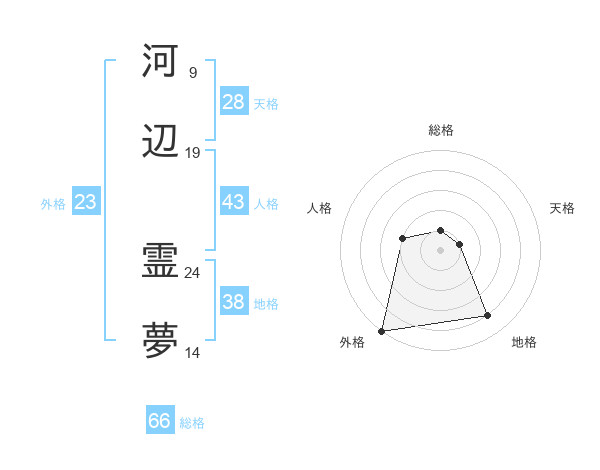 河辺 霊夢さんを姓名の画数から五運を鑑定