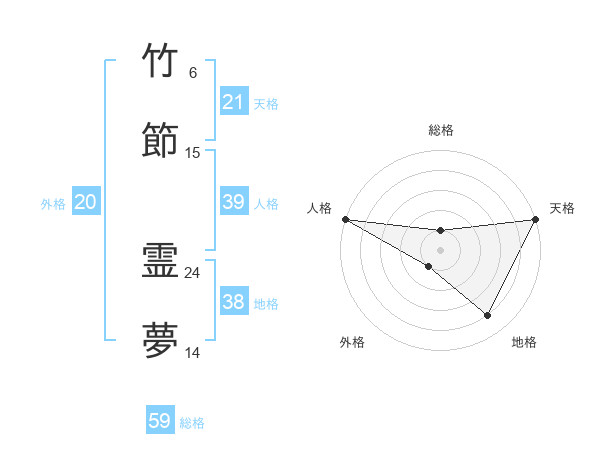 竹節 霊夢さんを姓名の画数から五運を鑑定