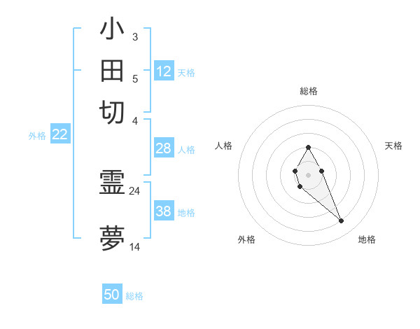 小田切 霊夢さんを姓名の画数から五運を鑑定
