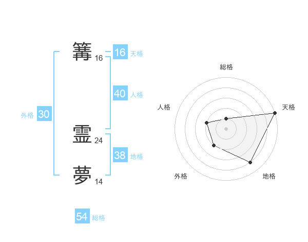 篝 霊夢さんの天格は16画の5点!
