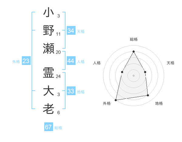 小野瀬 霊大老さんを姓名の画数から五運を鑑定
