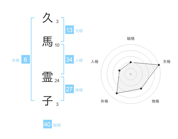 久馬 霊子さんの天格は13画の5点!