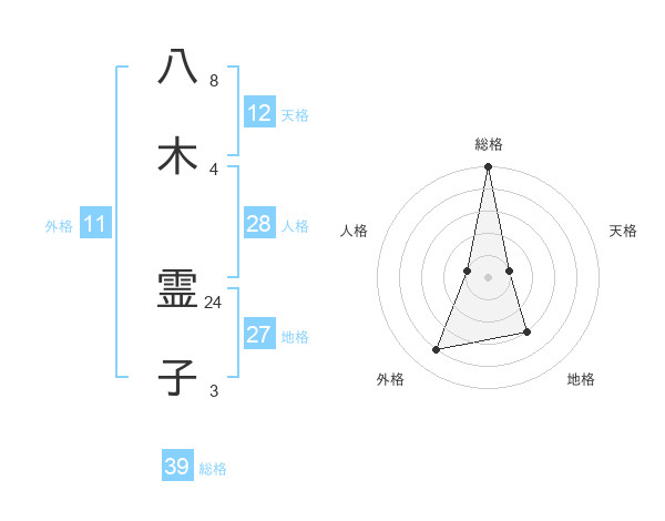 八木 霊子さんの総格は39画の5点