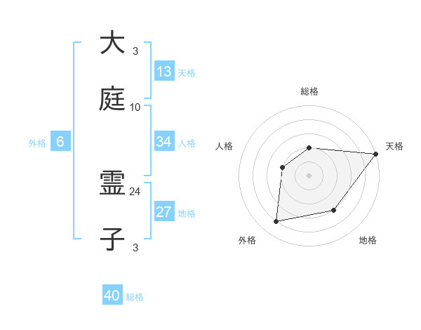大庭 霊子さんの天格は13画の5点!
