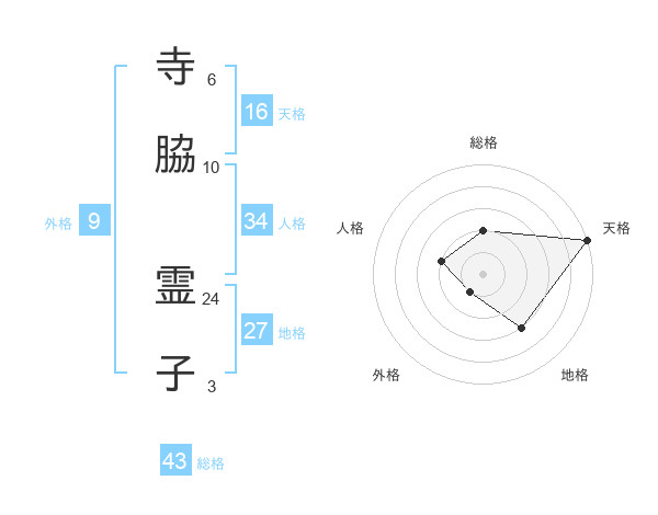 寺脇 霊子さんを姓名の画数から五運を鑑定