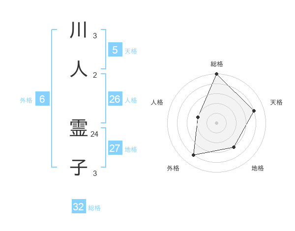 川人 霊子さんの総格は32画の5点!