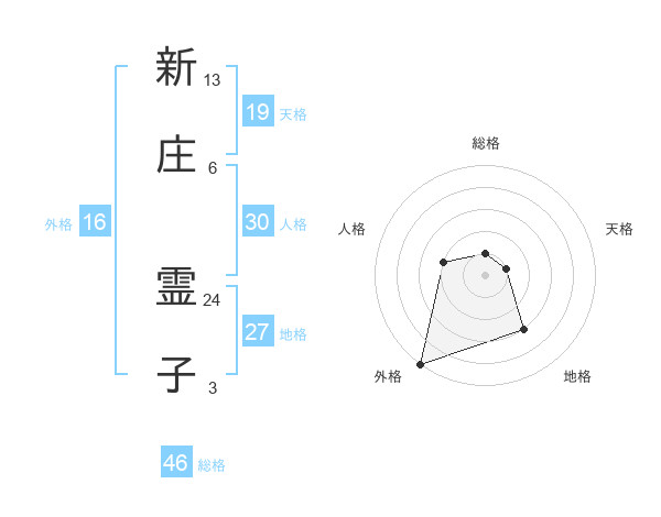 新庄 霊子さんを姓名の画数から五運を鑑定