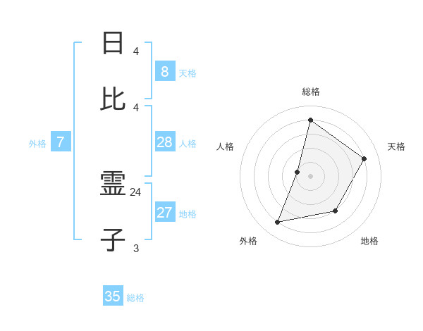 日比 霊子さんの総格は35画の4点!