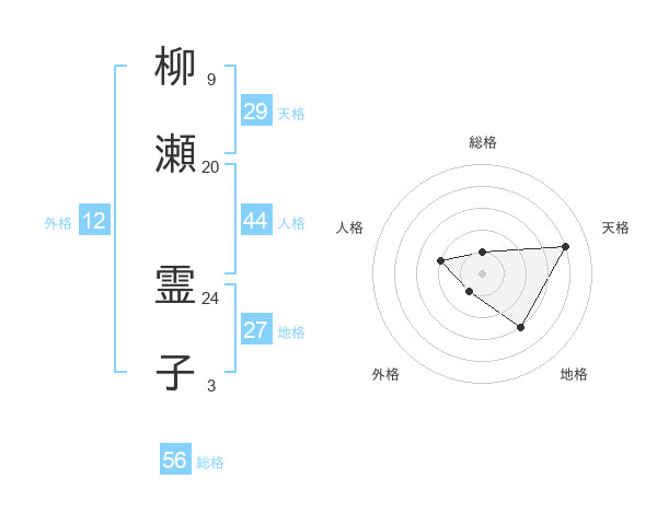 柳瀬 霊子さんを姓名の画数から五運を鑑定