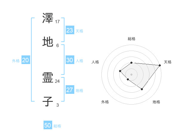 澤地 霊子さんを姓名の画数から五運を鑑定