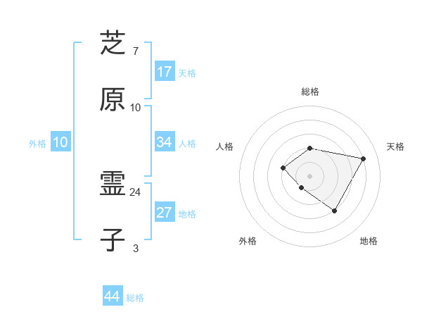 芝原 霊子さんの天格は17画の4点!