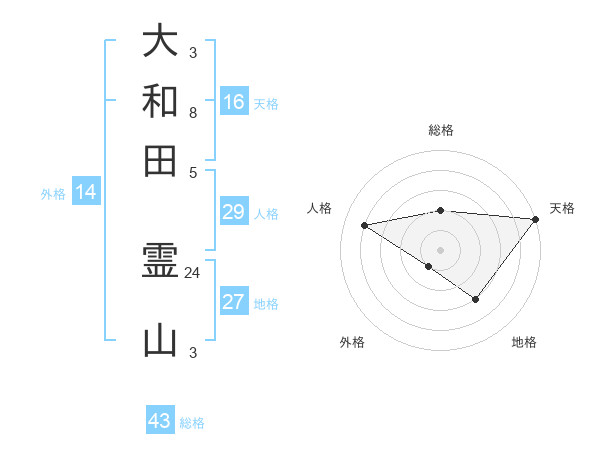 大和田 霊山さんを姓名の画数から五運を鑑定