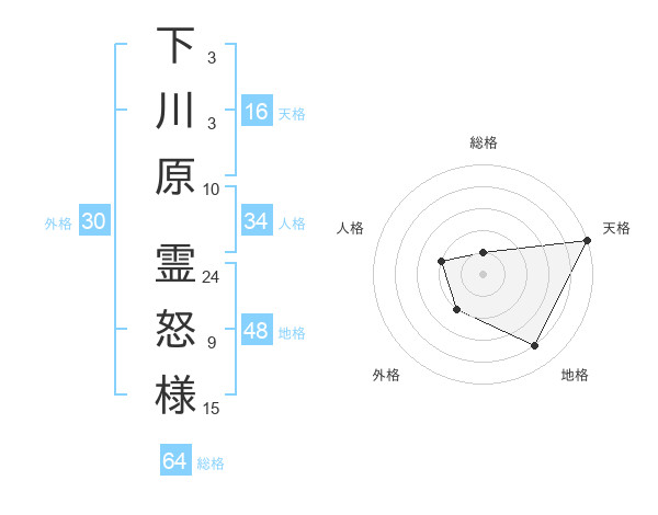 下川原 霊怒様さんの天格は16画の5点