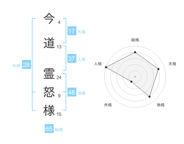 今道 霊怒様さんを姓名の画数から五運を鑑定