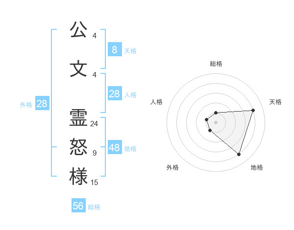 公文 霊怒様さんを姓名の画数から五運を鑑定