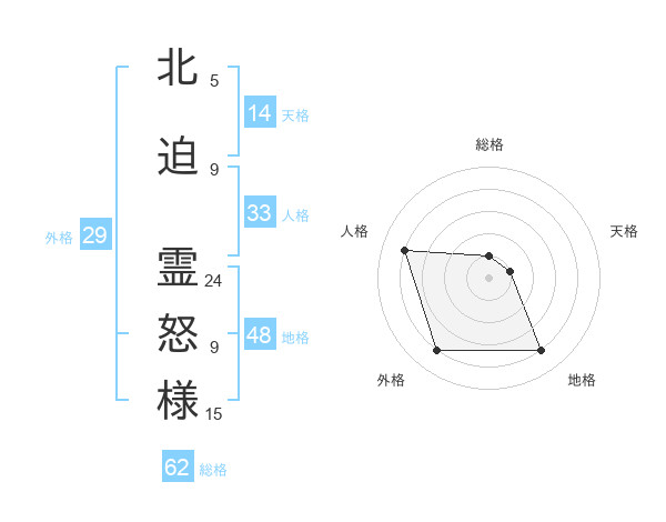 北迫 霊怒様さんを姓名の画数から五運を鑑定
