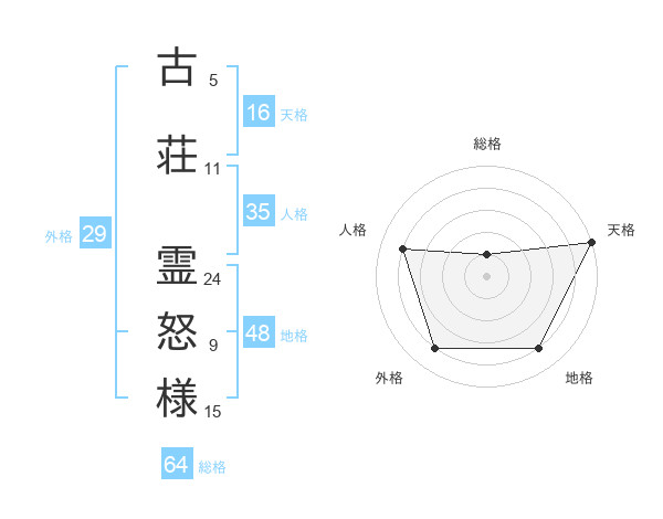 古荘 霊怒様さんを姓名の画数から五運を鑑定