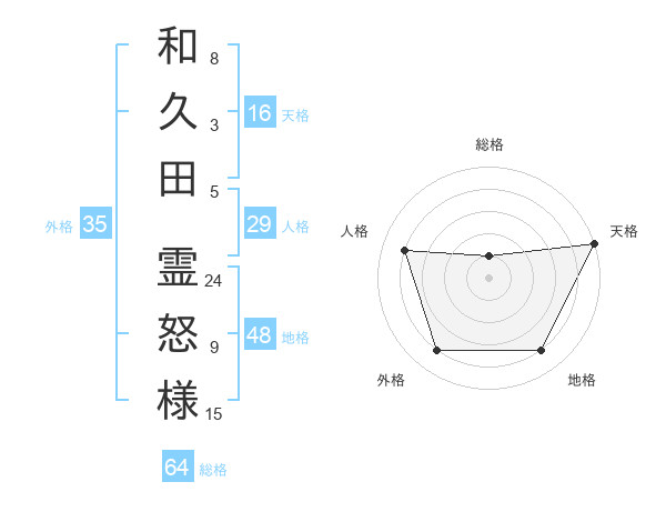 和久田 霊怒様さんを姓名の画数から五運を鑑定