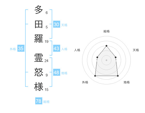 多田羅 霊怒様さんの総格は78画の3点!
