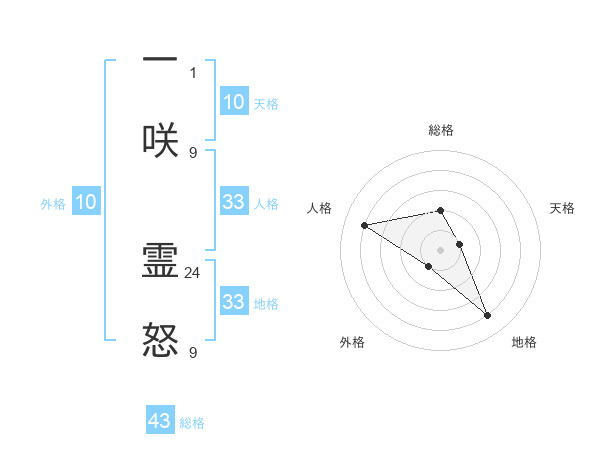 一咲 霊怒さんを姓名の画数から五運を鑑定