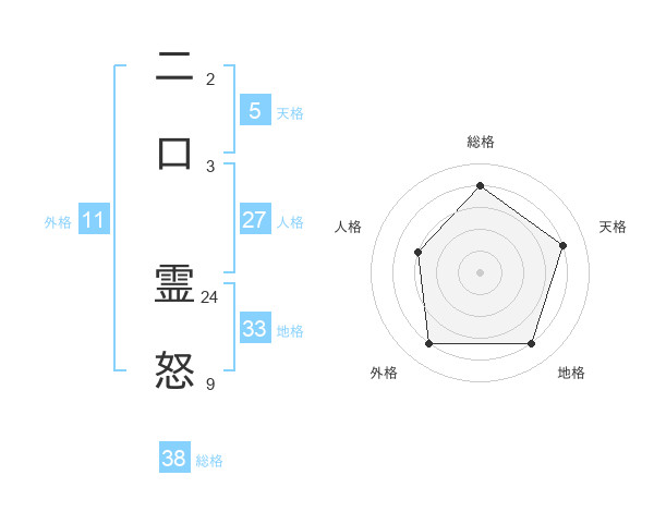 二口 霊怒さんの総格は38画の4点!